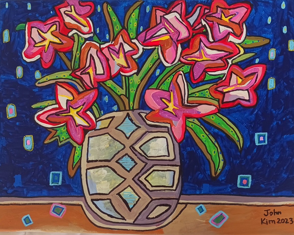Acrylic artist John Kim, with two decades of experience, has been captivating paintings featuring French flowers & towns have become a sought-after focal point at Taipei's prestigious Riviera Hotel.